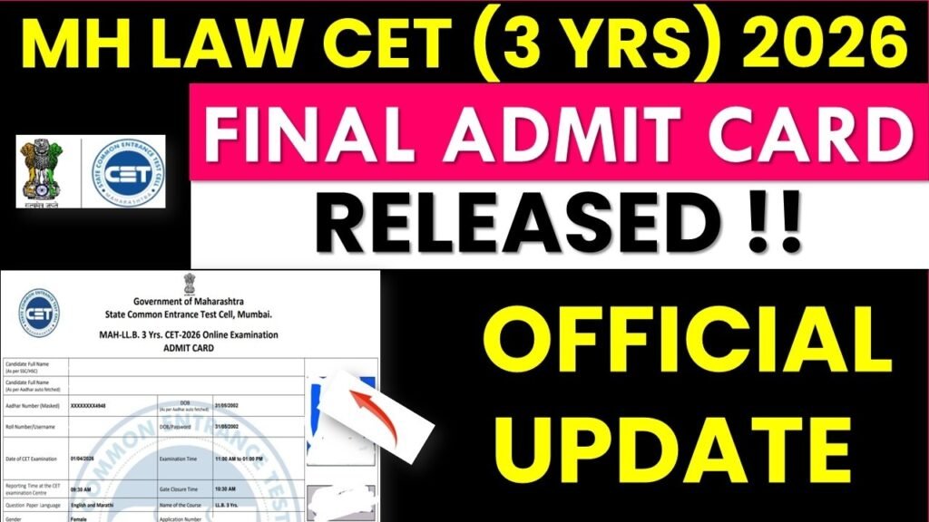 The MH CET 3-Year LLB Admit Card 2026 has been released, and candidates can now download their hall ticket from the official website. The Maharashtra Common Entrance Test (MH CET Law) is a crucial examination for students seeking admission to 3-year LLB programs in law colleges across Maharashtra. With the admit card now available, candidates should promptly access it and verify all details to avoid last-minute issues.